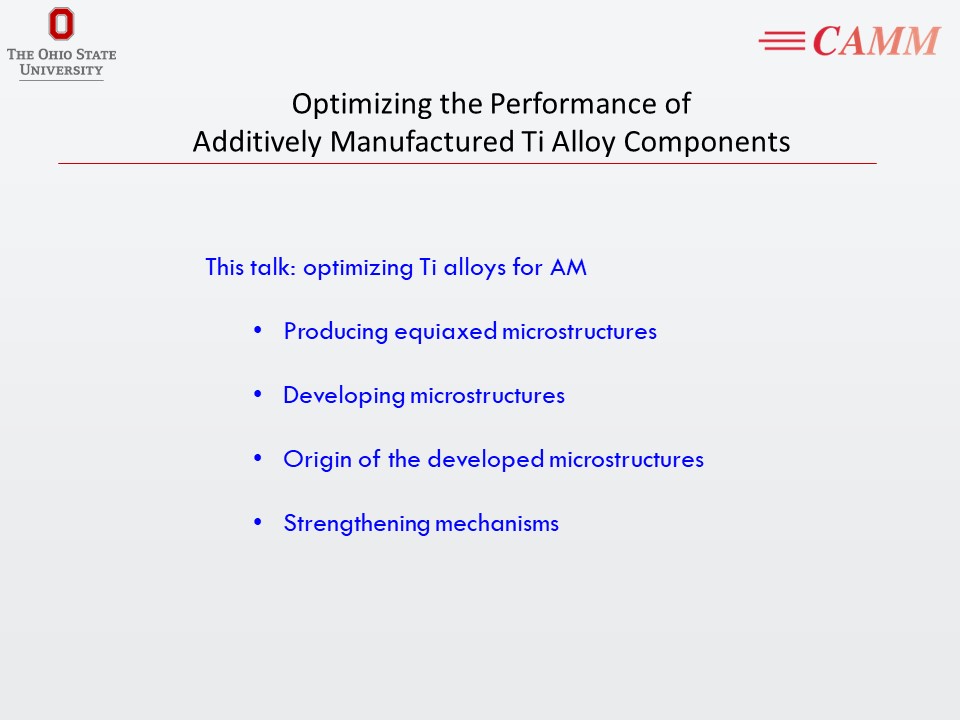 Optimizing the Performance of Additively Manufactured Ti Alloy Components
