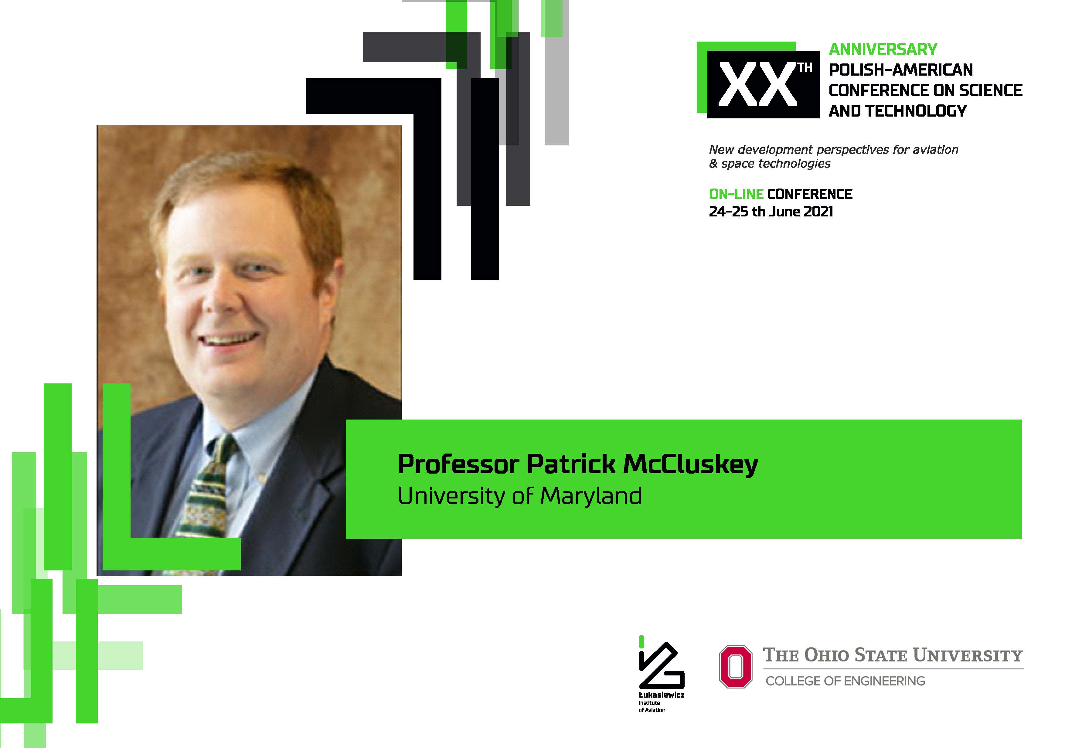 | Dr. Patrick McCluskey is a Professor of Mechanical Engineering at the University of Maryland, College Park and the Department’s Design and Reliability of Systems Division Leader. He has over 25 years of research experience in the areas of thermal management, reliability, and packaging of electronic systems for use in extreme temperature environments and power applications. Dr. McCluskey has co-authored three books, 5 US Patents, and over 150 peer-reviewed technical articles with over 3000 citations. He is an associate editor of the IEEE Transactions on Components, Packaging, and Manufacturing Technology, a member of the board of governors of the IEEE Electronic Packaging Society, a fellow and member of the Executive Council of IMAPS, and a member of ASME and AIAA. |