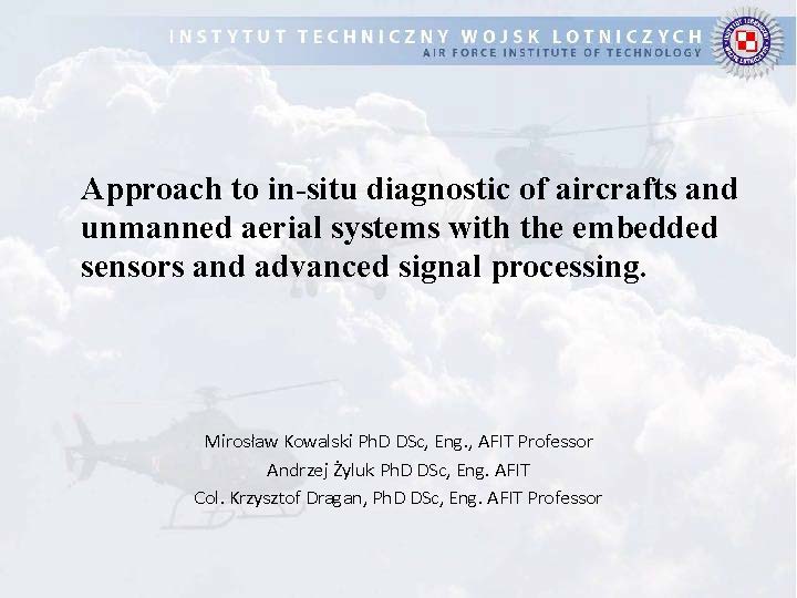 Approach to in-situ diagostic of aircrafts and unnmanned aerialsystems with the embedded sensors and advanced signal processing.